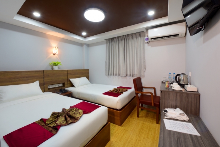 We have 20 rooms available, each with a size of 174 sqft. Among these rooms, 15 are equipped with double beds, while the remaining 5 rooms feature twin beds. All of our rooms offer a picturesque view of the city. Additionally, our guests can enjoy a complimentary breakfast during their stay.